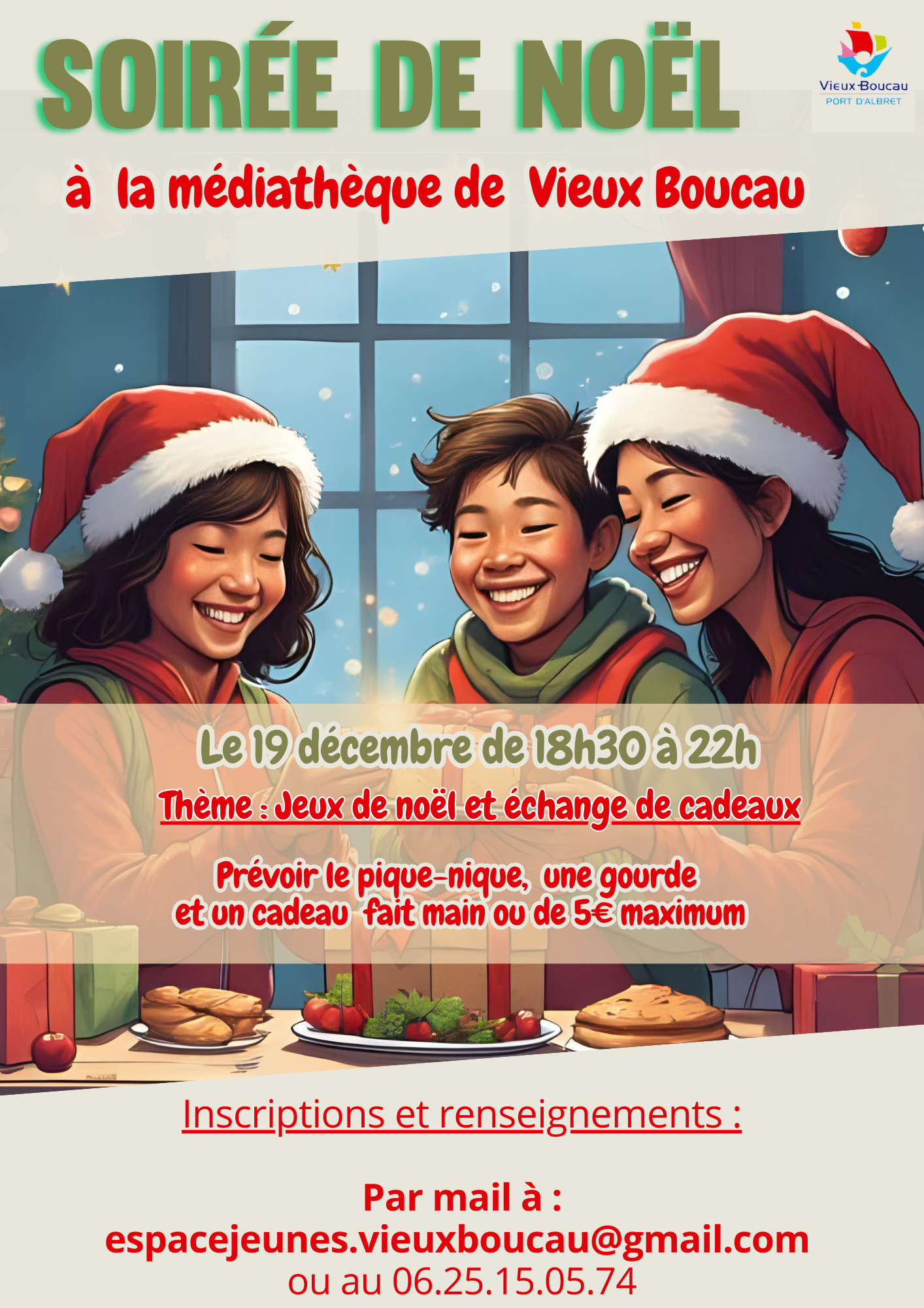 Lorsque votre enfant est inscrit à l’Espace jeunes, il peut réserver sa place pour les activités qu’il désire par mail Cette adresse e-mail est protégée contre les robots spammeurs. Vous devez activer le JavaScript pour la visualiser. ou par téléphone : 06 25 15 05 74. Attention, les places sont limitées.
